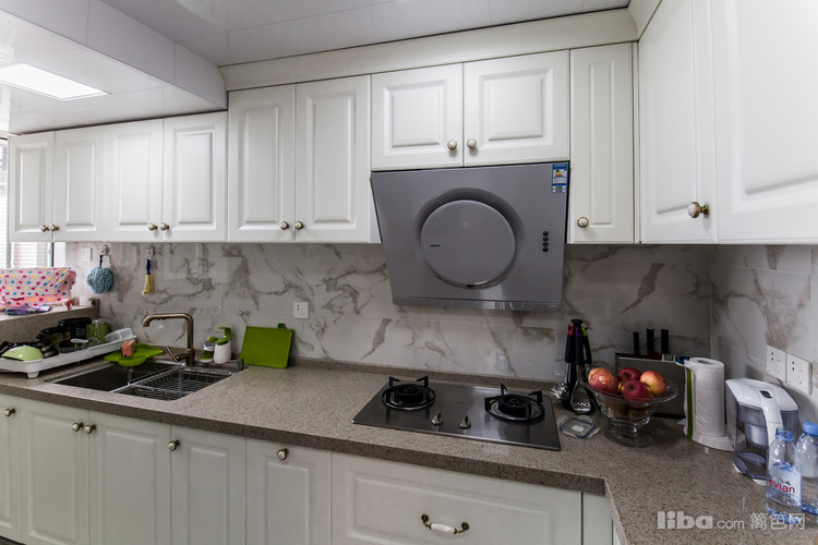 白色橱柜设计与白色纹理的大理石融为一体,打造出清新优雅的自然格局。