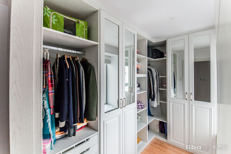衣帽间的纯白风格,放佛来到来一个全新的小天地,透亮的艺术玻璃镜,在灯光下,别具一番浪漫风情。