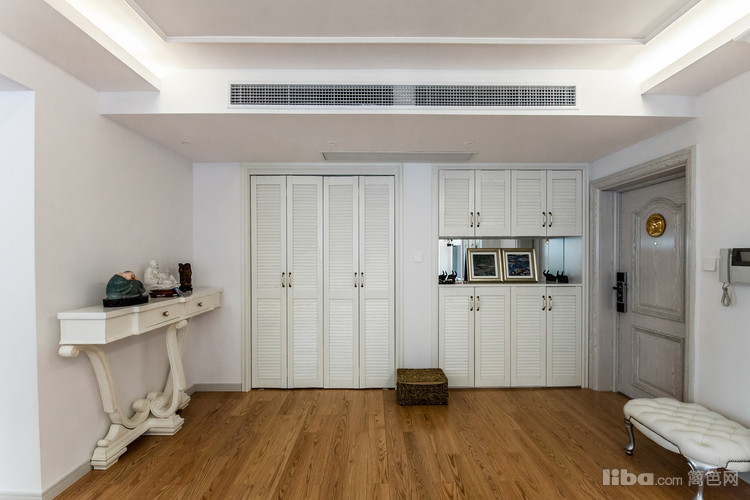 4.设计师对业主了解后,在玄关处设计了隐蔽的储藏室,有效的利用空间,让空间变得整齐大方。