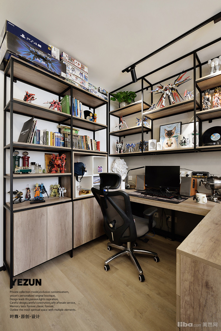厨房采用了上下分色的设计,避免过多的白色,使整体太为单一。由于是开放式厨房,从美观度角度考虑,吊顶使用了防水石膏板,没有使用铝扣板。