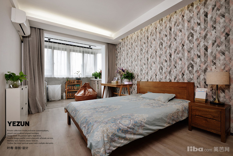 主卧由于老墙面存在开裂问题,为了避免后期再出现开裂问题,墙面选择了墙纸,由于是母亲房间,整体色调会显得相对更温馨一些。次卧采用了榻榻米的设计,增加了储物,可以存放一些换季的物品