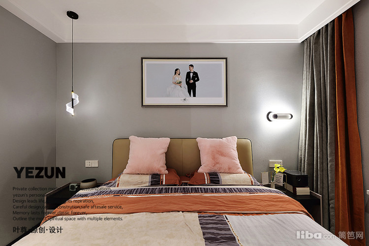 卧室延续了整体空间的色调,设计师运用沉静简美、简洁有力的设计语言创造出一个独具厚度的舒适空间。