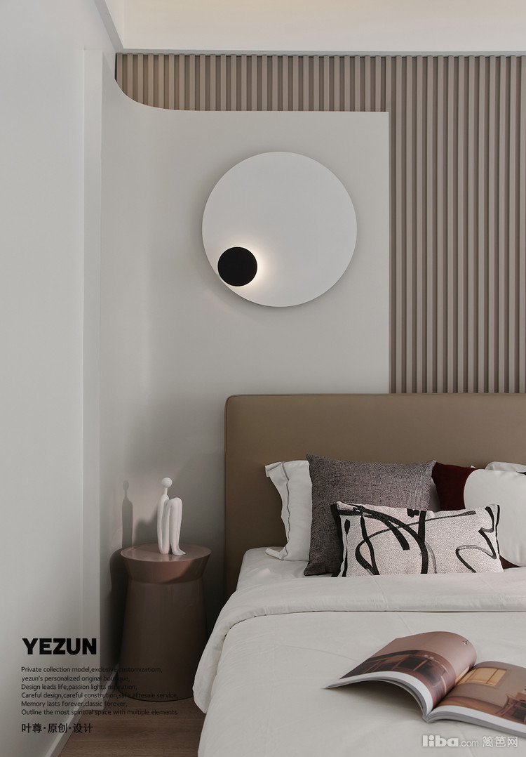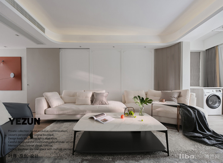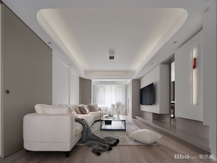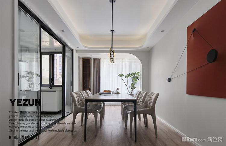 空间整体呈现出一种温暖素净的感觉,通过跳色的装饰画、绿植等软装的搭配变得更富生活气息。
