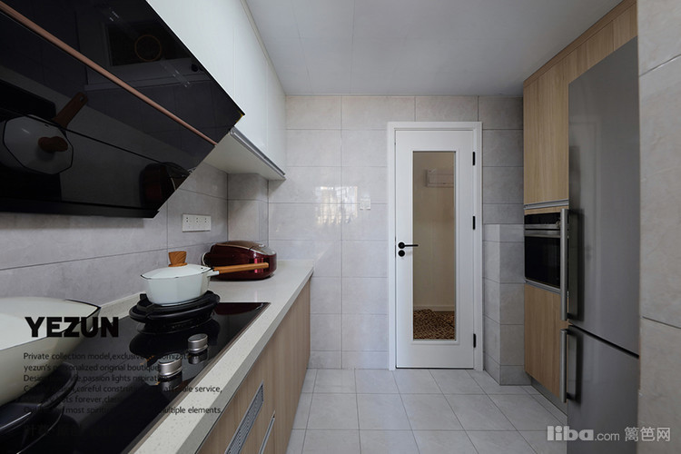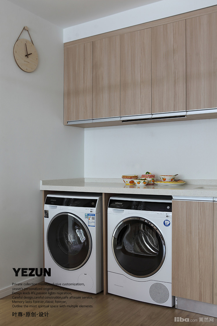 厨房选择了上柜白色下柜木纹色,增加空间的层次感,蒸烤一体设计给我们爱烘焙的女主人增加了很多乐趣。合理的橱柜布局满足了厨房的整个收纳。