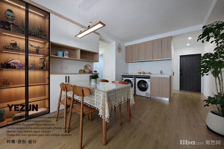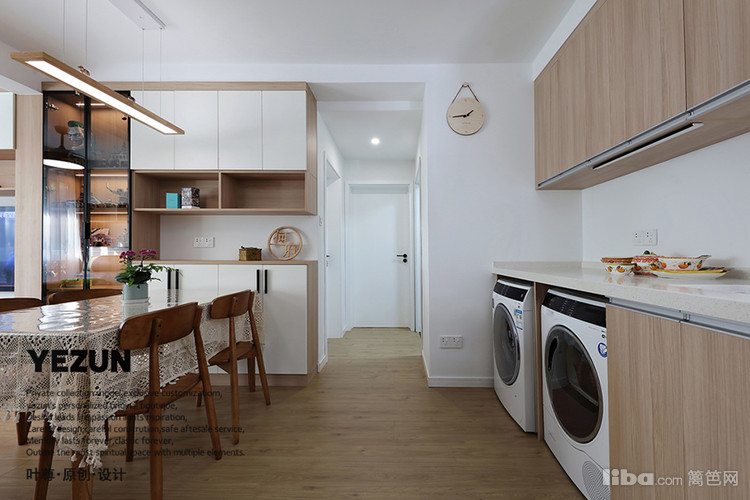 餐厅的吧台设计一举两得,既可以作为休闲区也可以做洗烘区,把原来的晾晒区域充分给到客厅,再加上落地窗的设计,这样的客餐厅采光更加完美。
