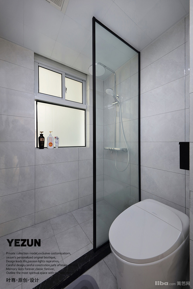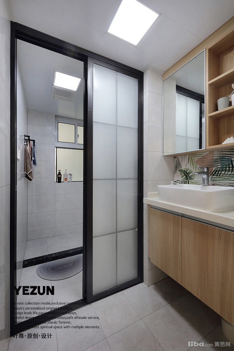 卫生间采用干湿分离的设计,洗漱区和洗浴区不会冲突。绿色的花砖也是让原本阴暗低沉的干区更加明亮活跃。
