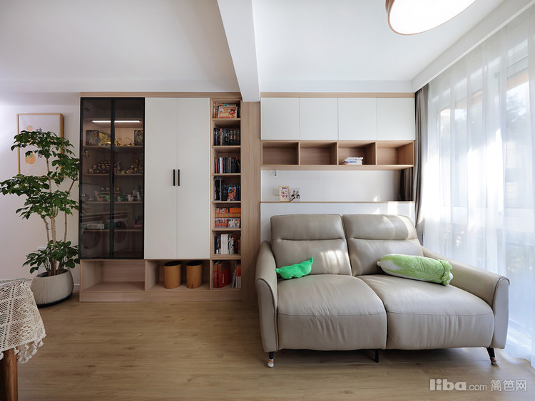 榻榻米和书柜一体,是未来的儿童房也是现在的客房兼书房,在静谧的空间享受书香四溢,困倦便在一旁小憩。
