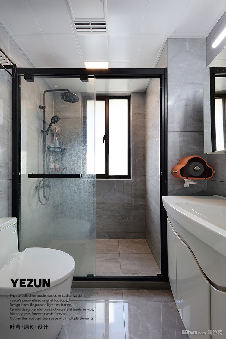 原始公卫尺寸偏向正方形,浪费空间较多,所以我们将窗户那面墙到卫生间门的墙径深缩短,增大了外面的过道宽度。卫生间里面淋浴房内径仍然可以加宽,淋浴房到门的距离还能保持在1米空间。