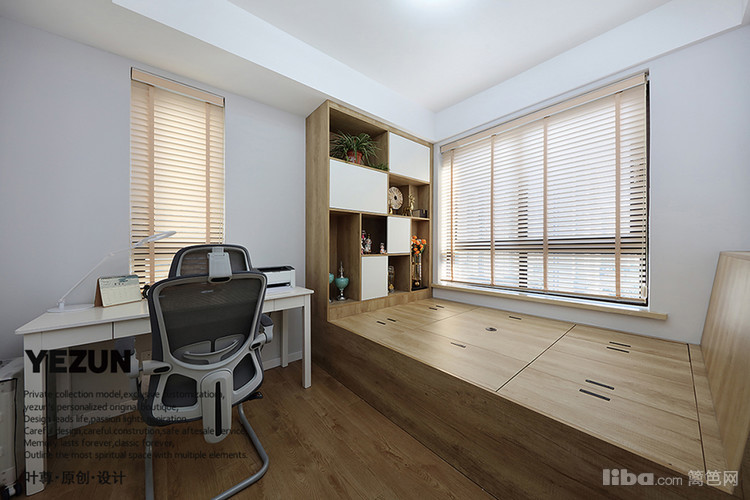 北卧室为备用客房兼书房,所以榻榻米是个很好的选择,既可以储物又可以休息。