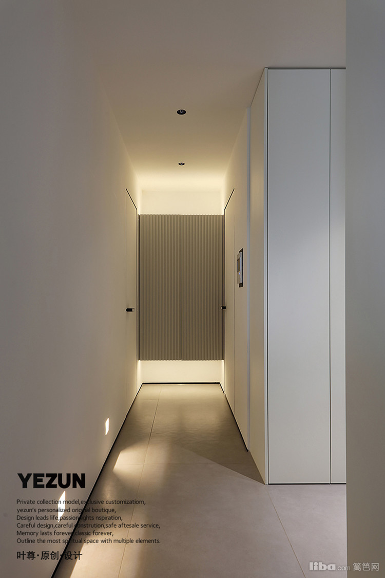通道的”白“,都是为了体现如空气一般透明的质感,如果一张洁白画布,当业主从通道走过,周边的灯随着业主而亮起,就像画龙点睛一般,呈现出不同的画面。