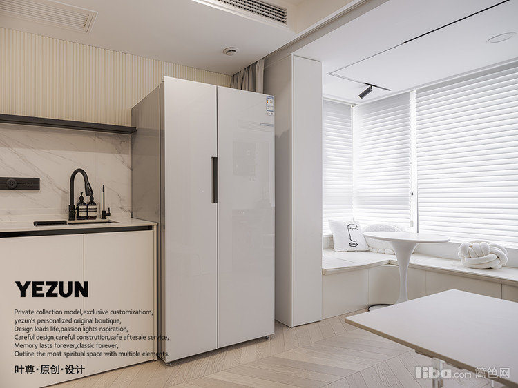 客厅位置中增加了水吧功能,将厅划分为工作区和休闲区两个功能,阳台位置规划为男主人的办公区。可以满足一家四口同时在厅内活动,且相互不受干扰。