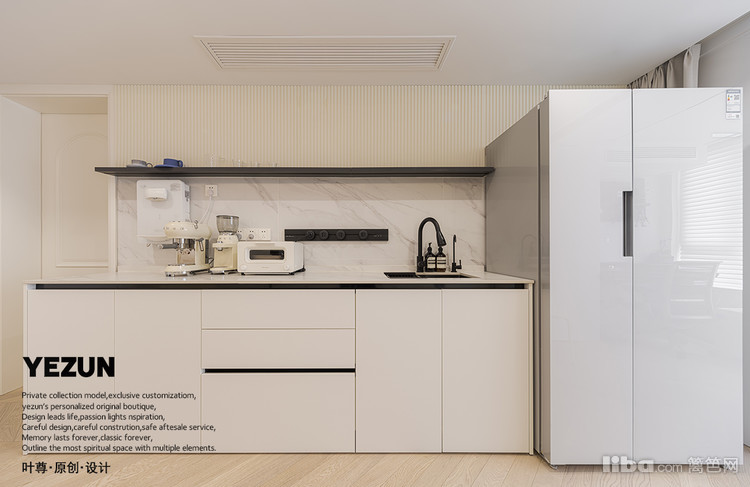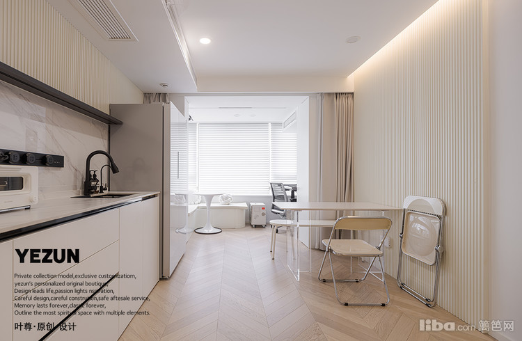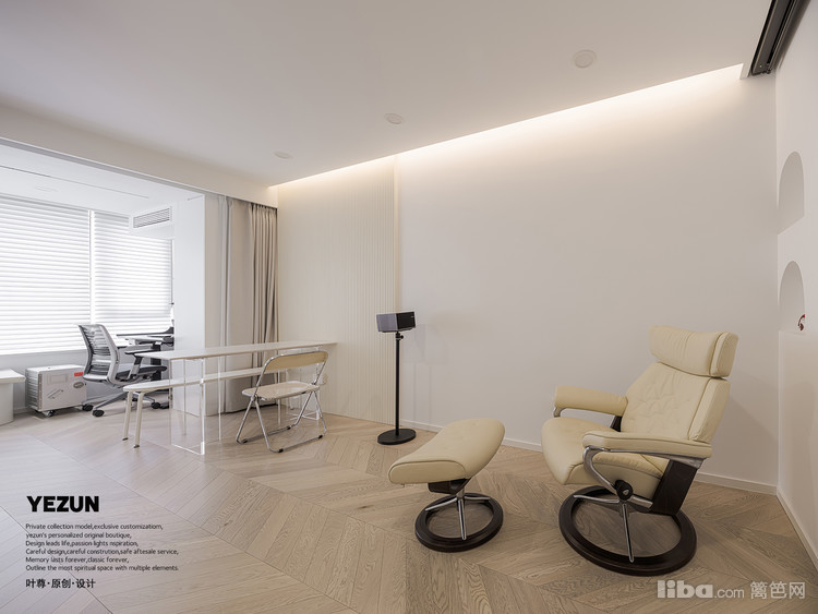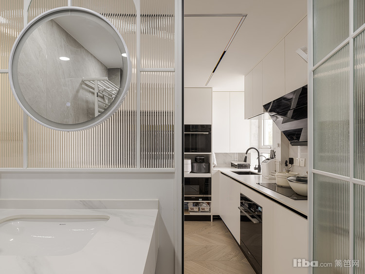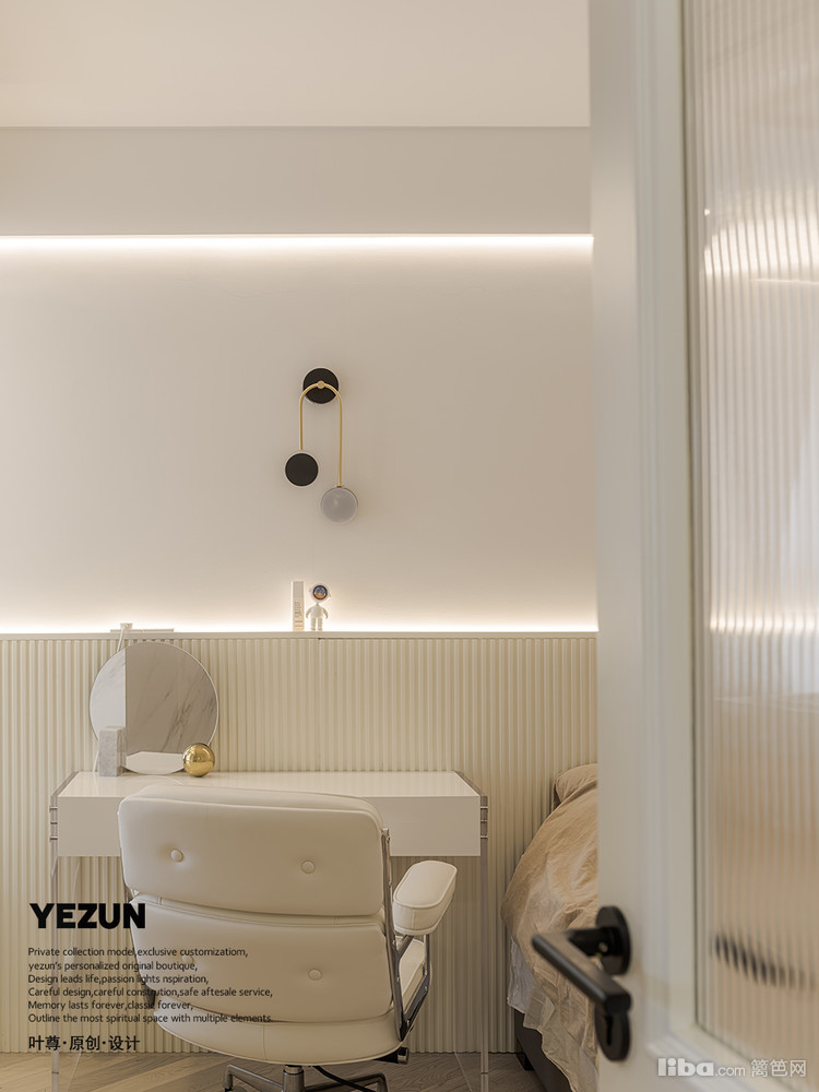 整体的大色调,采用了白色加暖白灯光的规划。在细节空间上增加满墙柜体,既满足了女主人喜欢的极简风格,又实现了家庭的储物收纳,从而达到最终整体空间的干净简洁的效果。