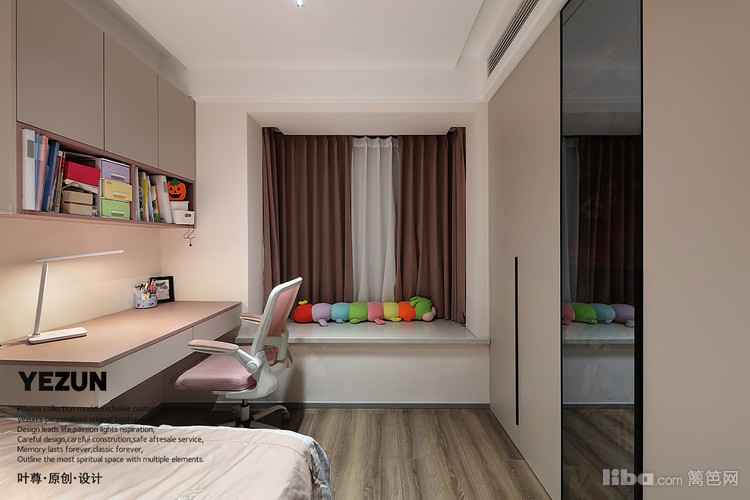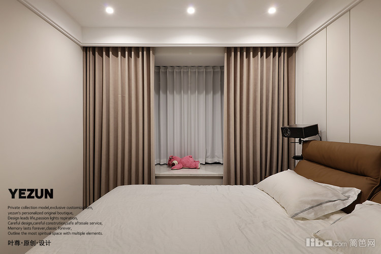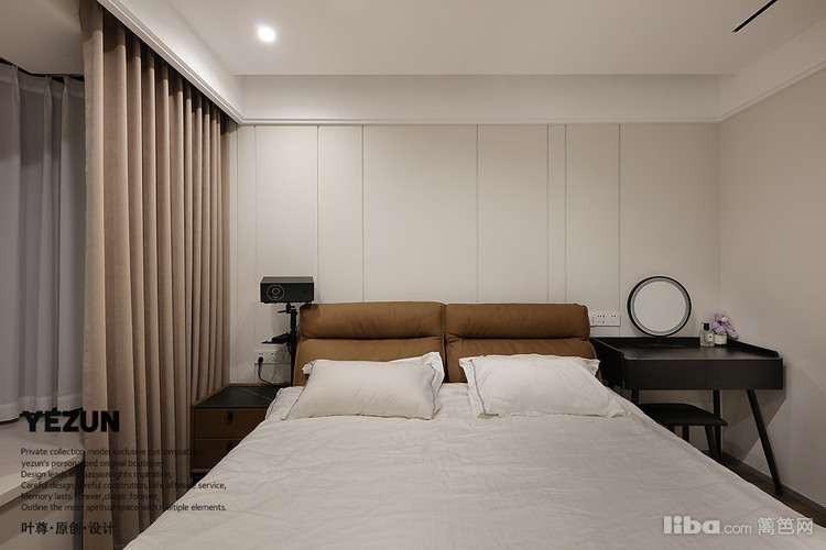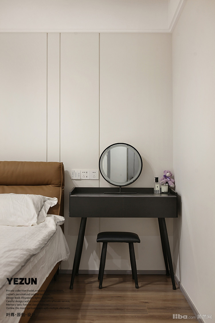 卧室运用简约主义的设计手法,利用背景造型创造了一个充满艺术格调的立体感空间,材质和色彩均与客厅玄关整体相呼应。