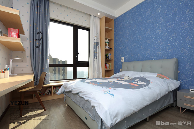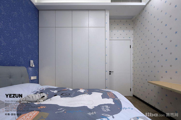 03_卧室 #蓝绿色 主卧室背景墙用深色作为背景