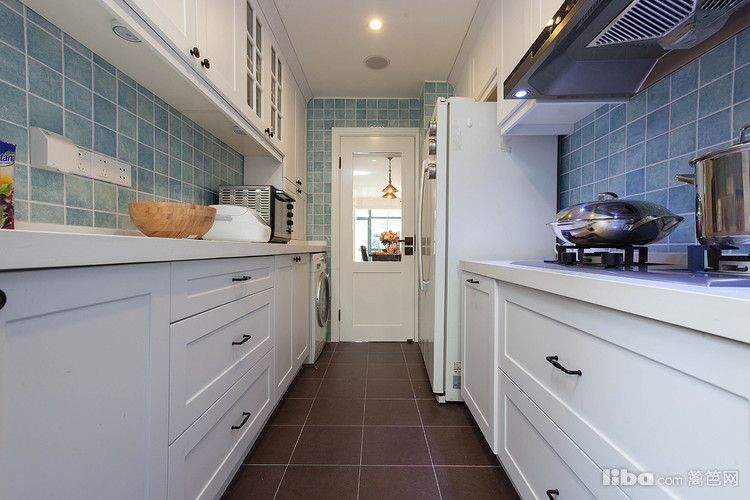 厨房选用白色的橱柜门,U型的厨房更能增加使用面积。