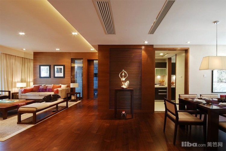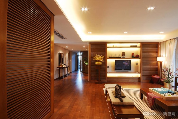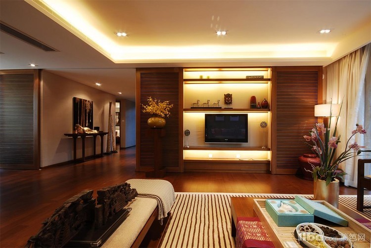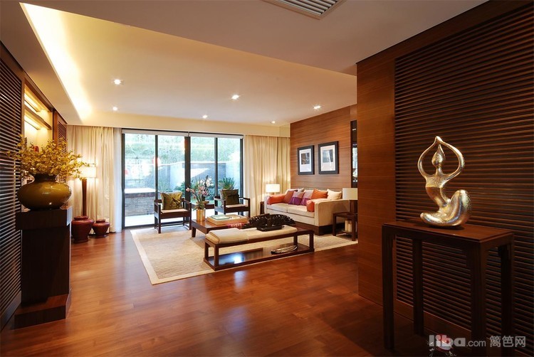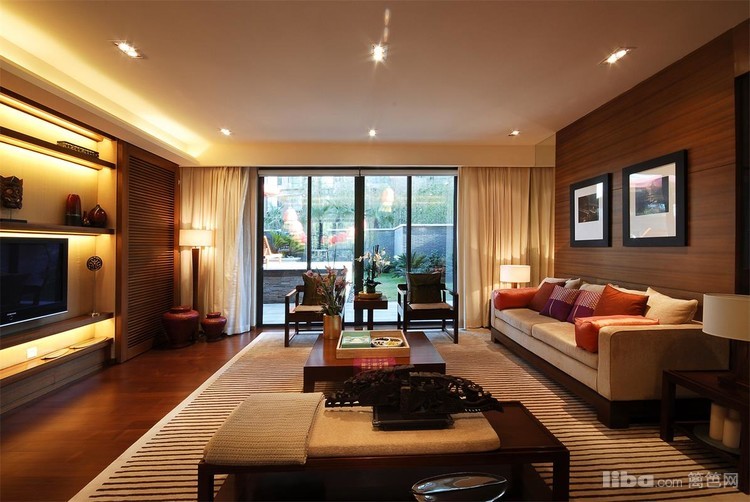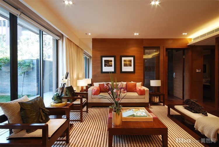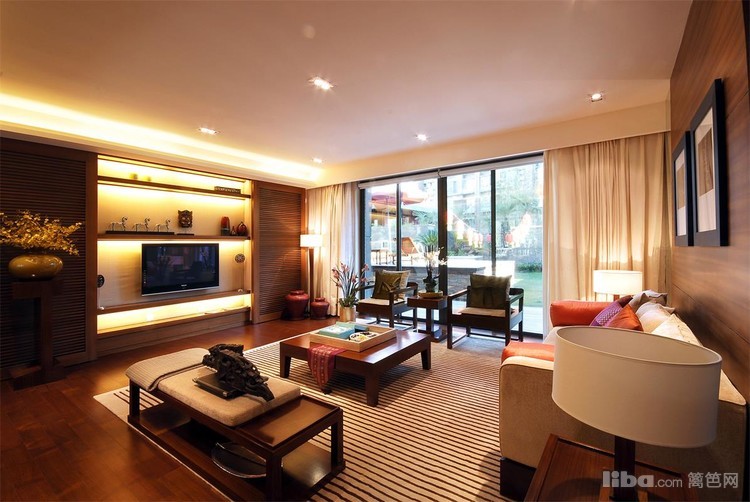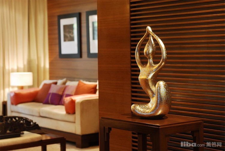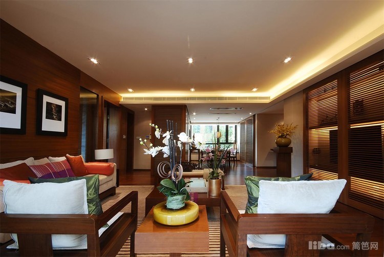 客厅的风格运用东南亚热带风格,深色的主色调充满了神秘感。