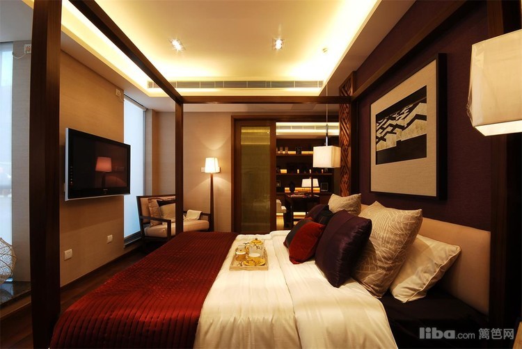 卧室风格以奢侈为主,暖色系的灯带更显示的暖色调的温和。