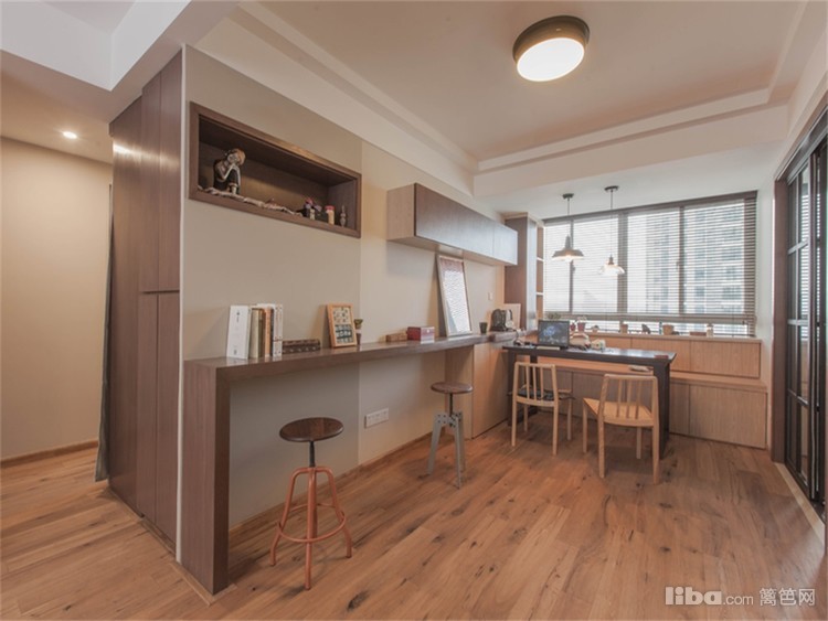 过道和玄关空间很大,在过道处增设了吧台的功能。