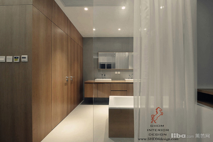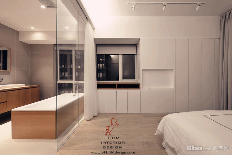 原木的气息,充满了真个私人空间,大片的玻璃隔断与纱幔,透亮而又隐秘。