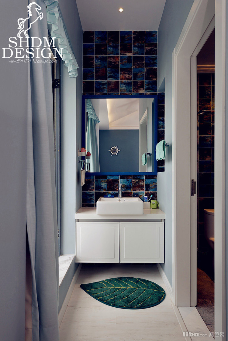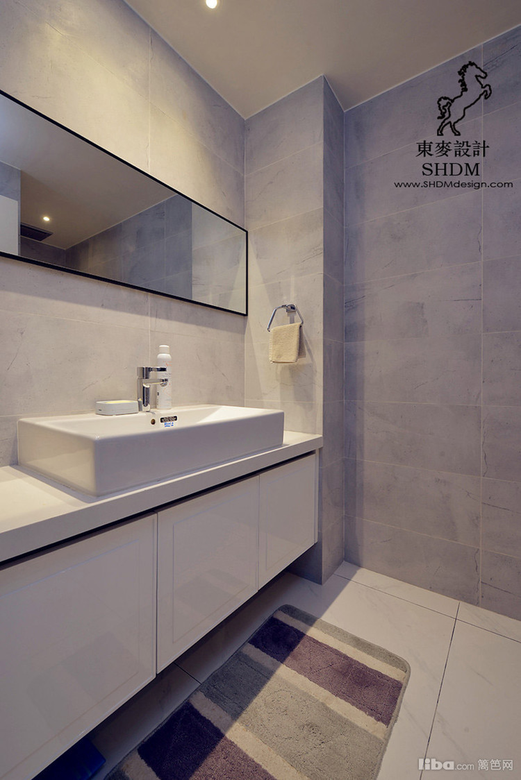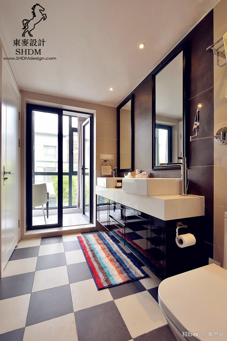 颜色艳丽的地毯,点缀深色基调的卫生间。