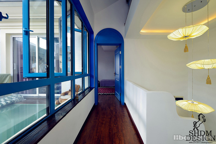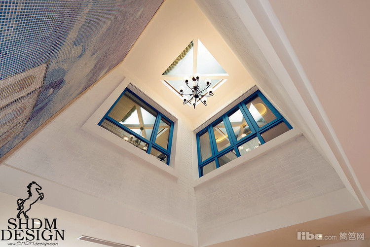 走道的以蓝白相间为背景,梦幻的老虎窗...