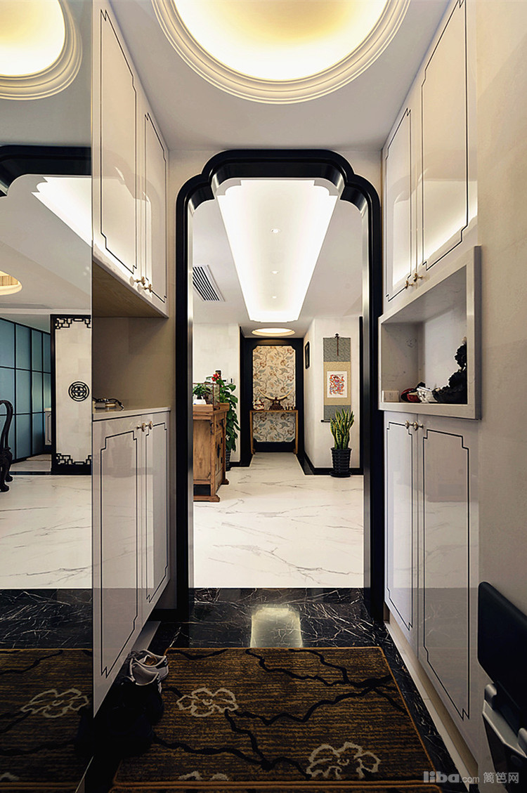 玄关细长,白色的亮光烤漆板门会让玄关空间不显局促。