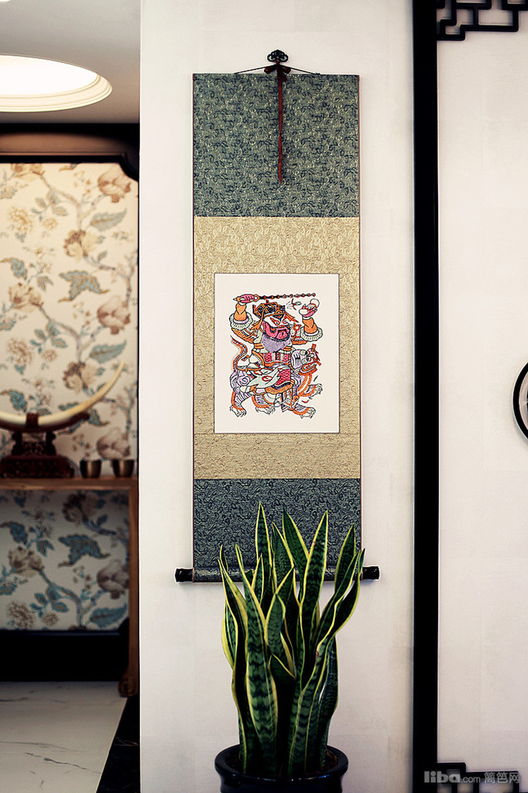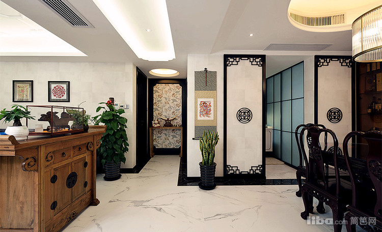 墙顶同样的浅白色,搭配年代感较强的玄关柜体,深色的年代家具,色彩相得益彰,不会深的太厚,也不会浅的太浮。