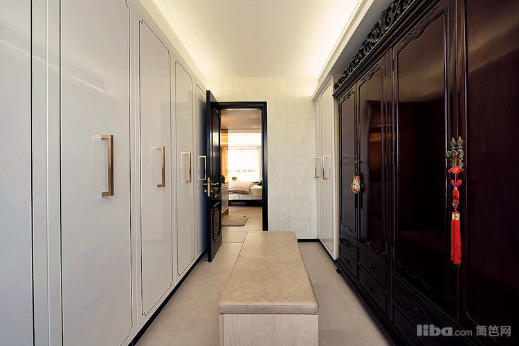 都是老式的实木家具,所以,在定制的柜体上面,都以简洁白色为主。