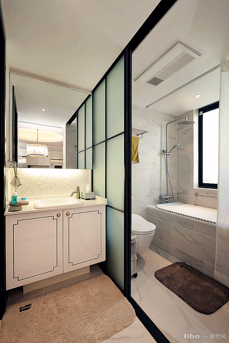 干湿分离,采用玉砂玻璃移门,隔断作用外不影响采光。