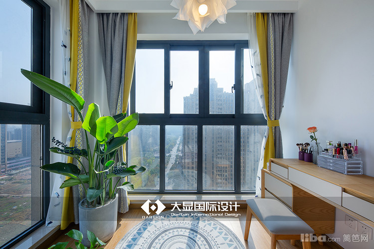 把阳台包进卧室,卧室也能够拥有大而明亮的窗,大大的落地窗前是青翠的绿植,另一侧是梳妆台,也可做工作台,通透的尺度,硬朗的礼序,灵动的精致,每一面都是传情喻志的宣言,尽显细腻的美。