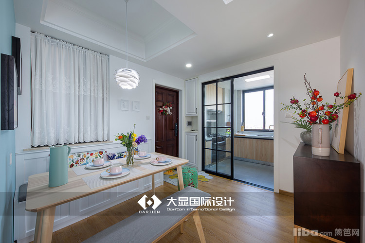 玻璃格子推拉门为餐厅和厨房做了很好的划分,两个空间紧邻,因为玻璃格子推拉门而划分开,同时又因为是玻璃推拉门,可以轻易的在视觉上把空间包括延伸在内。