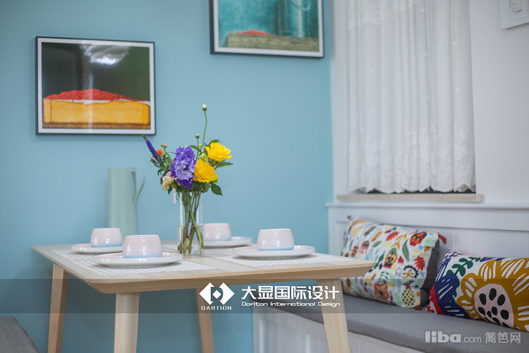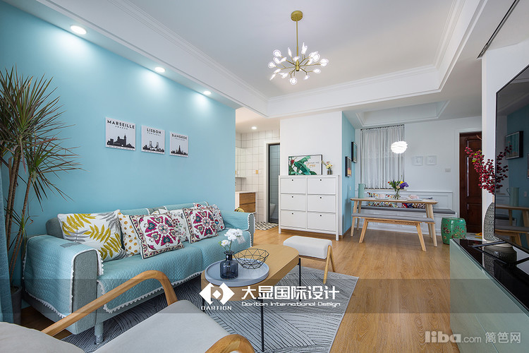人类喜爱自然,喜欢光明,设计师让空间整体色调为蓝色,搭配木色再用绿植点缀,自然又清新。