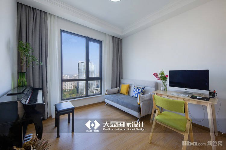 此间为休闲娱乐室,业主家人都很喜爱音乐,平时闲来无事在温和的阳光下弹奏一曲,灰色的沙发带着慵懒的感觉,怕整体空间太过懒散。