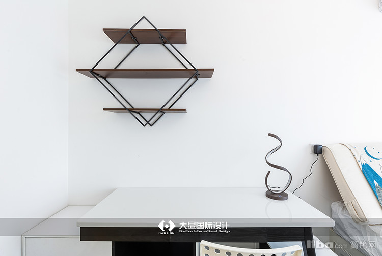 利用墙面空间安装了具有设计感的书架。