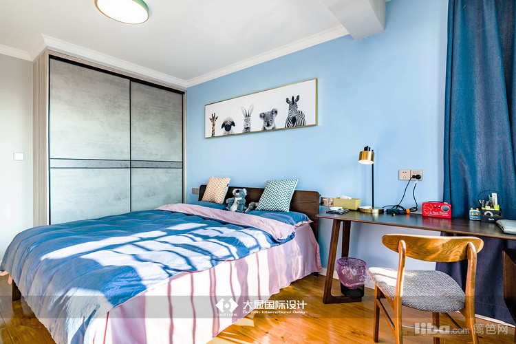 次卧延续主卧的风格也是整体为蓝色