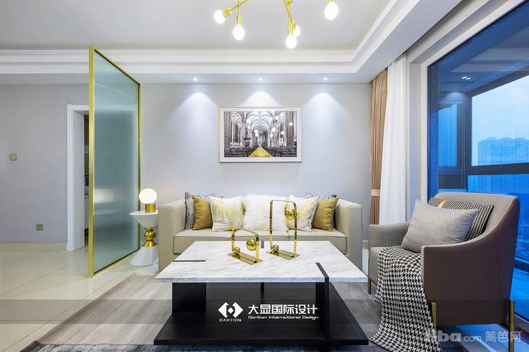 单人的咖啡色座椅,直接降低了整个空间的奢华度,很好的把控了轻奢度