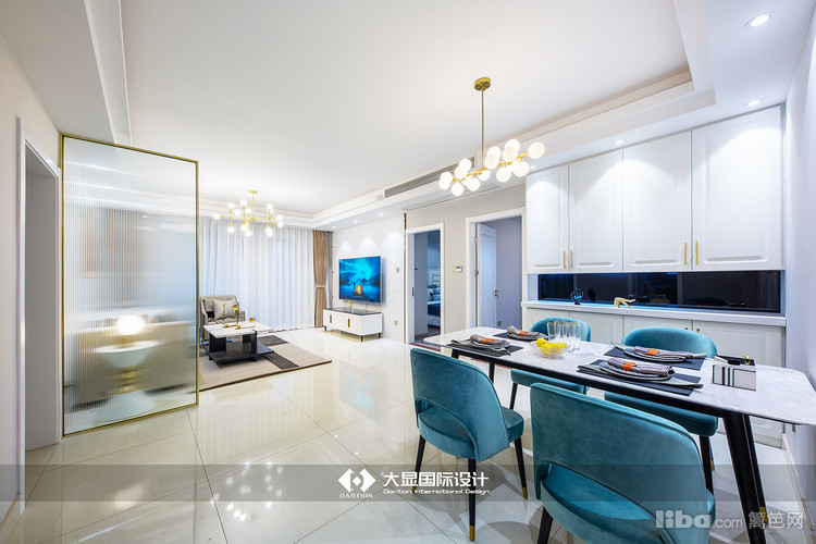 设计师为这片空间注入一抹蓝色,整体增加了一抹优雅