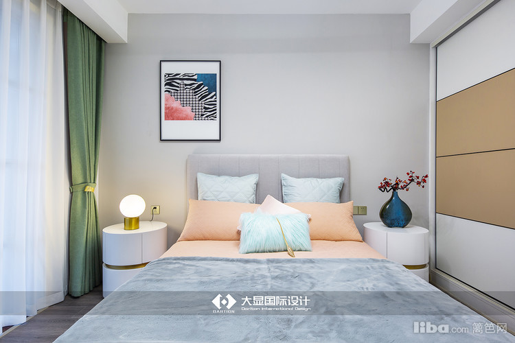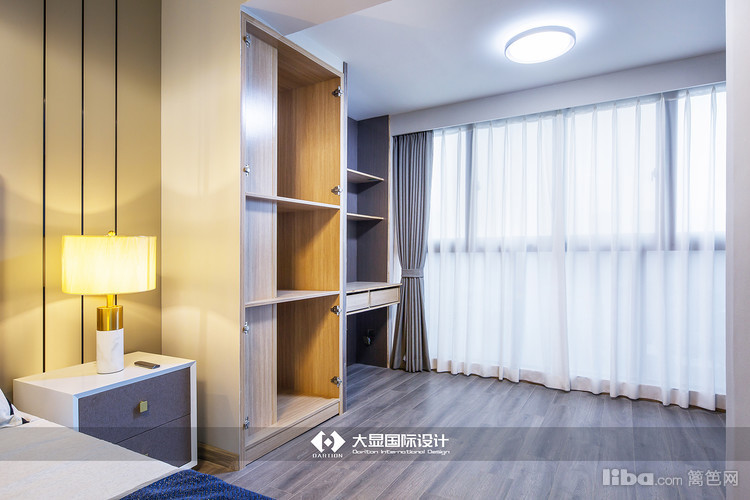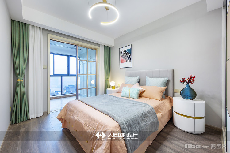 因为是卧室,两层窗帘,一层为窗纱,能够透光隔热,不影响光线,另一层窗帘隔热隔光,能够更安心入睡。