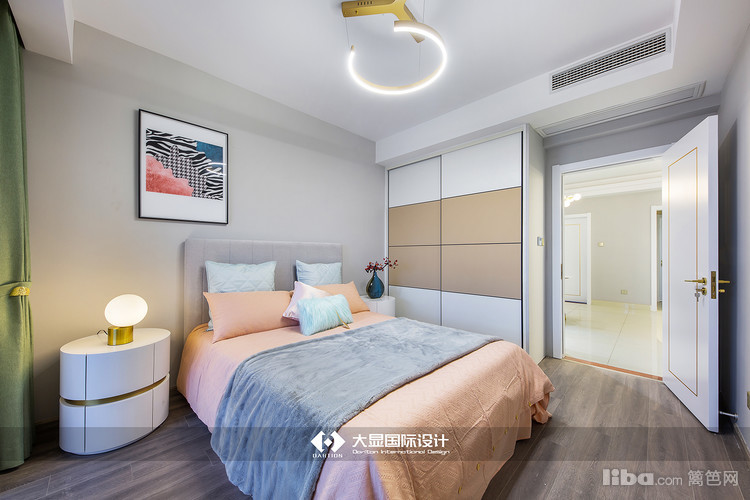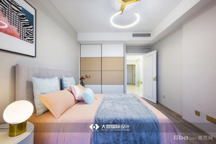 儿童房相较于主卧多一些快活俏皮的感觉,卧室吊灯使用艺术造型灯