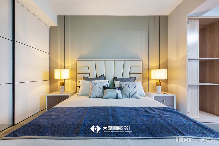 主卧整体安静而温馨,并没有做太多的繁琐的设计,只是从色彩搭配和灯光设计上就营造出一种温暖的氛围