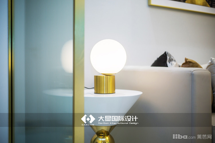 背景墙上的挂画,桌子上的灯以及桌子身上的金属,都有画龙点睛的感觉,提升整体华丽感。