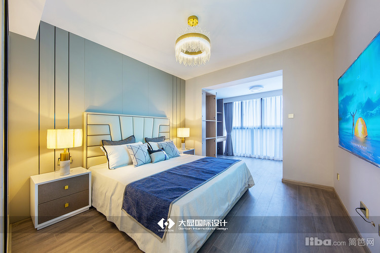 床头灯和吊灯的金属元素又给主卧增添一些奢华的气息。