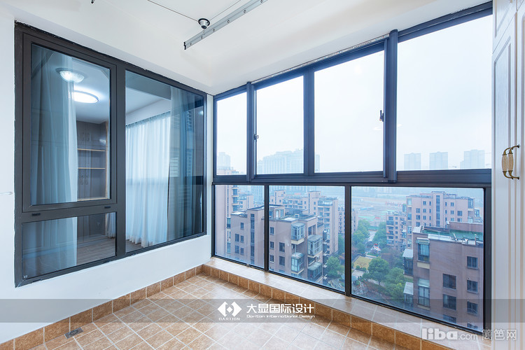 主卧阳台与客厅阳台一样使用大面积的玻璃,使得整体空间透亮,