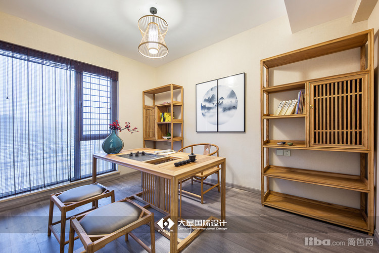 茶室,也可做会客厅、书房,这片空间整体偏中式。