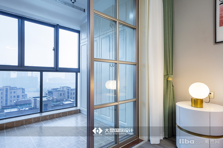 次卧与主卧阳台之间没有使用墙壁隔开,而是使用玻璃隔开,视觉上得以延伸,也不影响平时对阳台的使用。