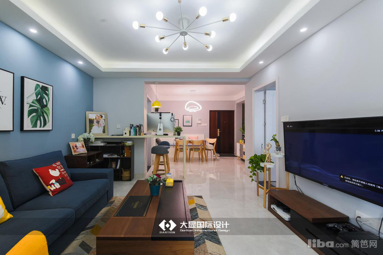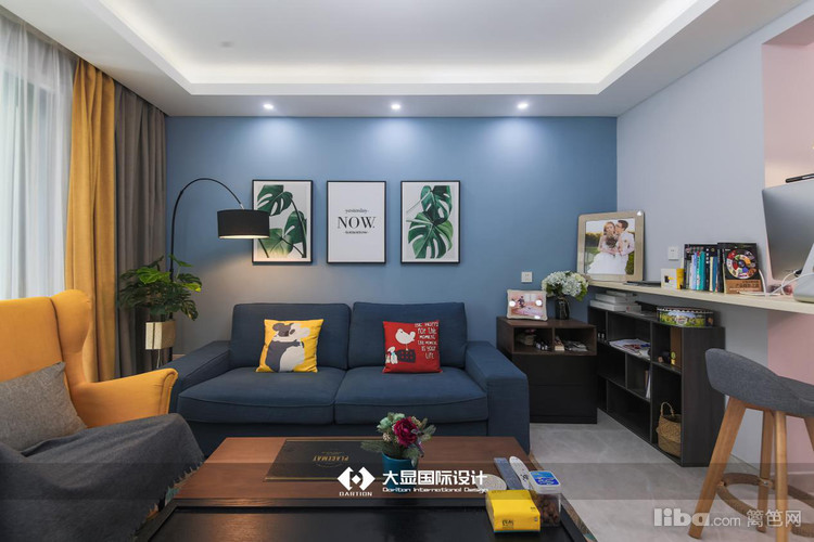 客厅靠墙一侧有个小吧台,这是因为女主人怀孕了,次卧作为儿童房使用,业主夫妻又都是喜欢听歌、看书的人,再有平时工作也是需要一个区域的,所以设计师在这里设计了开放式小书房,或者说工作区