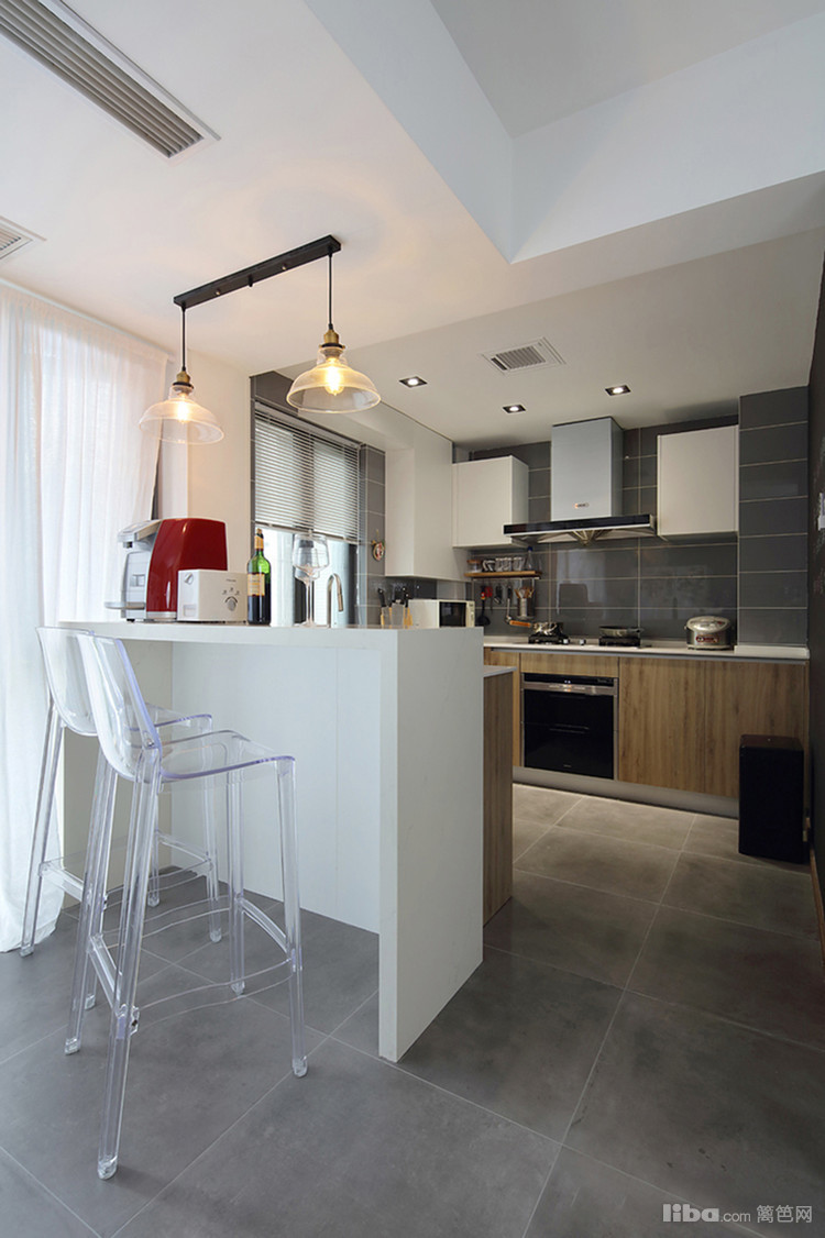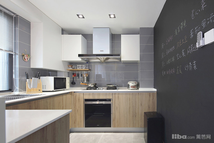 厨房的橱柜使用烤漆面板,不仅看着干净明亮,在打理的时候也很方便。