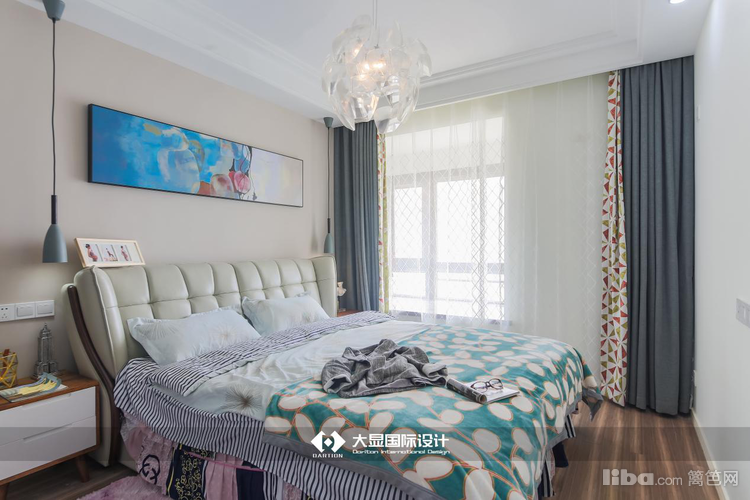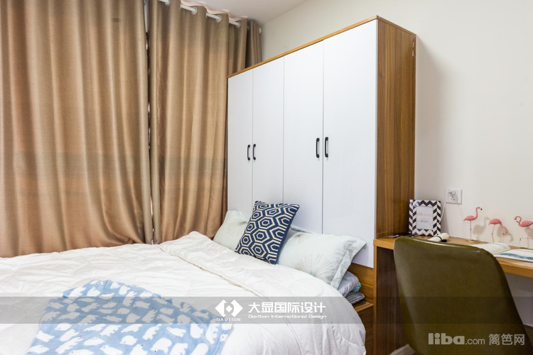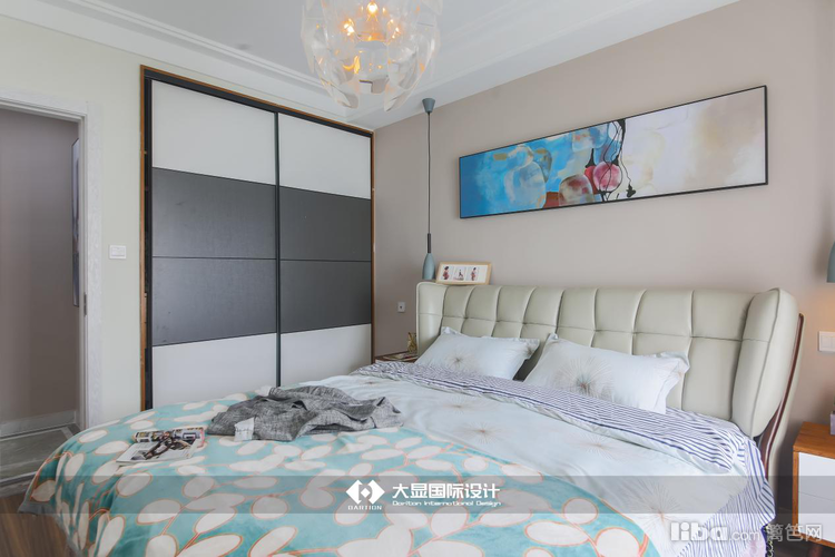 主卧主要是简约的风格,整体是比较偏与安静的颜色,很适合凝想与放松,业主夫妻都是比较注重睡眠的人,在这个环境下很有利于睡眠哦。