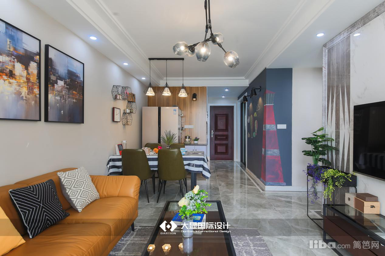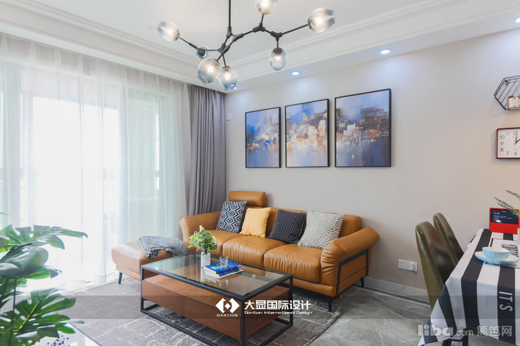 因为房子空间不算大,这里把客餐厅设计在一起,设计师巧妙地使用三人沙发和单人沙发,尽量的靠近阳台,这样客厅客餐厅不会显得拥挤。