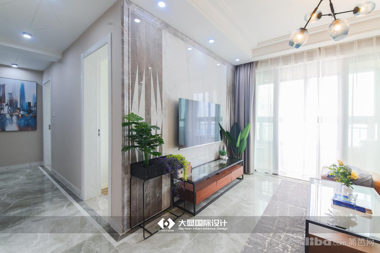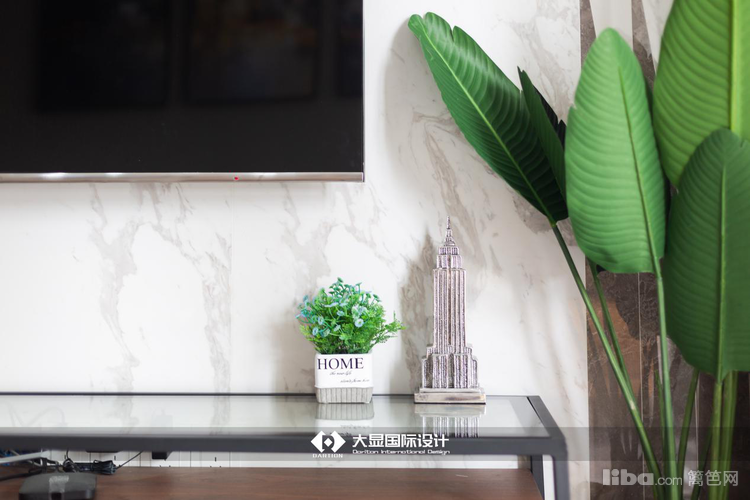 用大理石做阳角收口,左右都摆放有绿植,整体更加贴近自然,缓解了大理石的冰冷感。